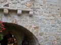 głównym gościńcem docieramy do zamku - warowni, mury zwieńcza krenelaż - to prostokątne występy wieńczące średniowieczne mury i baszty obronne, stanowiące osłonę dla strzelających łuczników, pozwalające z ukrycia strzelać do oblegających przez prześwity, blanki.