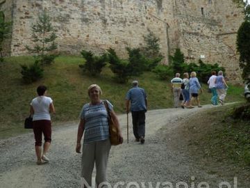 głównym gościńcem docieramy do zamku - warowni, mury zwieńcza krenelaż - to prostokątne występy wieńczące średniowieczne mury i baszty obronne, stanowiące osło (Wytrzyszczka)