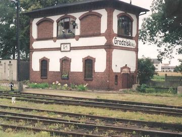 Grodzisk Wielkopolski-ul. Kolejowa, nastawnia od strony wjazdów z Opalenicy i Poznania. (Grodzisk Wielkopolski)