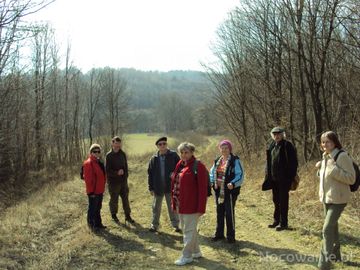 grupa z UTW z Sanoka - wytyczonym przez UG w Bukowsku -"Szlakiem Dawnych Osad" - tereny i ich historię - poznać zamierza, wczesną wiosną - by ślady wsi łatwiej (Bukowsko)