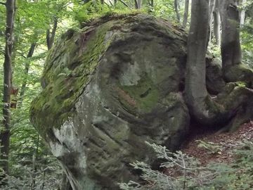 grzbiet góry - od strony północnej opada gwałtownie kilkadziesiąt metrów w dół, na jego skłonie pojawiają się fantastycznie ukształtowane ostańce i głazy.