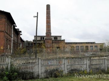 Hale fabryczne. Komin wyraźnie "obcięty" (Lubniewice)