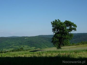 Harbutowice. Widok na Pasmo Babicy. Na pierwszym planie "Dąbek"k.os. Na Granicach.