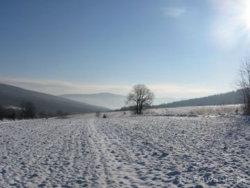 hen : Góra Potockiego a wcześniej po lewej lesista czupryna na zboczu pasma Jaworzyna - w tej galerii zdjęcia z naszego przejścia przez Las Gonszczawa do wsi Końskie /jest galeria - zapraszam/ a po prawej zbocze pasma Sosne z najwyższą kulminacją Horbek - ponad 530m npm /tu: poza zdjęciem/. My - przez "to orne" do domu Królikowskich - co na kurierskim szlaku przerzutowym...