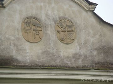 Herby na ryzalicie frontonu pałacu.  (Wzdów)