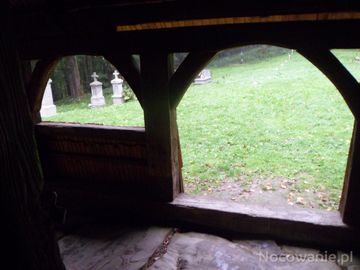 i jeszcze takie spojrzenie - po opuszczeniu cerkwi - tu pod dachem sobotów i na posadzce progu z głazów potężnych - na pomniki nagrobne - na krzyże w kamieniu osadzone...