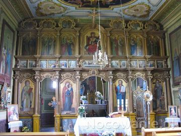 ikonostas cerkiewny - trójstrefowy, wykonany w latach 1899 - 1904, malowany przez Antoniego i Michała Bogdańskich.