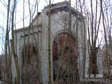 Jeden ze zniszczonych grobowców rodzinnych na cmentarzu ewangelickim (Gostków)