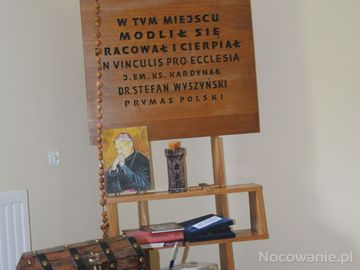 jesteśmy w salce katechetycznej - oddanej niedawno wiernym i pątnikom, urządzonej w starych folwarcznych obiektach zespołu klasztornego - tu niegdyś były stajnie i spichlerze, dziś siostra zakonna tu zgromadzonym będzie mówić o czasach internowania ks. prymasa Wyszyńskiego.