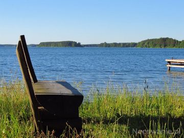 Jezioro Wdzydze i ławeczka dla strudzonych (Borsk)