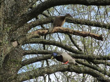 Kaczki na drzewie kanałem rzeki Wdy (Borsk)