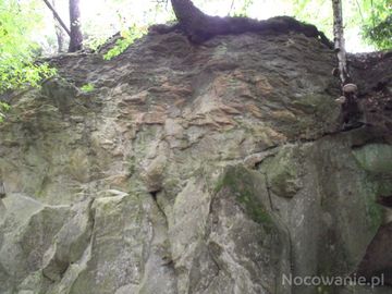 kamień - jako budulec był tu pozyskiwany, widoczne szczeliny do podkładania ładunków detonacyjnych, których odpalenie powodowało rozczepienie bloku skalnego - p (Glinne)
