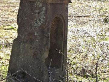 kamienny postument krzyża - może na rozstajach dróg do wsi - dziś często nie istniejących.