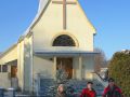 kapliczka - na rozstajach, wzniesiona w XIX wieku, murowana, z głęboką wnęką od frontu, dach kryty blachą, w sąsiedztwie "Dębniańskiej Skały" i karczmy żydowskiej, blisko do koryta rzeki San a za nim obszar zwany Chmielina i pasmo ze szczytami gór: Moczarki - 584m npm i Bucharewa - 530m npm /na Moczarkach - trianguł a poniżej niego - na prawo: stary leśny dukt do Tyrawy Solnej i Wujskiego.