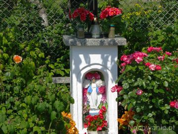 kapliczka przydrożna - pięknie ukwiecona.  (Karlików)