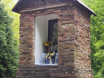 kapliczka przydrożna - wzniesiona w 1848r., we wnęce obraz Matki Bożej Miłosiernego Serca, przystrojona, blaty wyłożone obrusikami, mury oczyszczone, otoczenie uporządkowane.