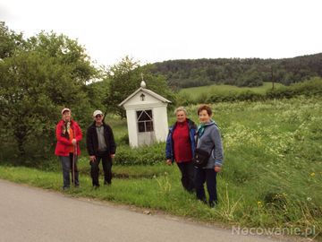 kapliczka przydrożna , zwieńczona hełmem baniastym w miniaturze na dachu /symbolizuje cerkiewną więźbę dachową/ oraz krzyżem prawosławnym.