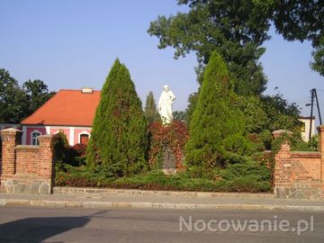 Kapliczka z figurą Serca Jezusowego przed plebanią. (Dolsk)