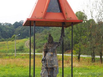 kapliczka z figurą św. Floriana, patrona strażaków, nakryta blaszanym daszkiem, którego zwieńczenie stanowi strażacka syrena.