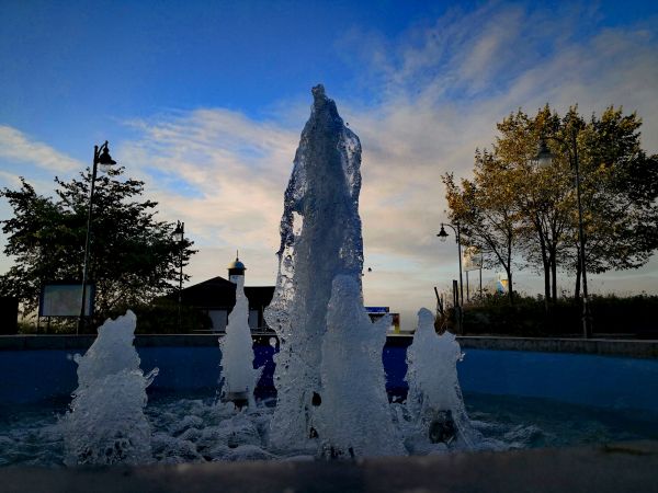 Na zdjęciach latarnia morska, "molo" oraz fontanna na promenadzie.