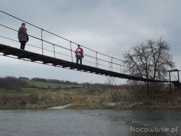 kładka nad rzeką Osławą - służy tylko pieszym, widać też w linii brzegowej płyty betonowe, są ułożone w poprzek koryta rzeki co pozwala przy niskim stanie wód przejeżdżać samochodami osobowymi i ciągnikami rolniczymi.