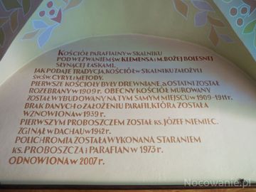 kompendium wiedzy historycznej, na murach / łuku kościelnym - dziękujemy ! Jan Długosz już w swoich czasach stwierdzał istnienie w Skalniku parafii i kościoła - za : Fr. Kotula. Kościół jest pod wezwaniem św. Klemensa, więc wezwaniem zaliczanym do najstarszych, przy temacie - byłem w kościele pw. św. Klemensa w Ustroniu, zapraszam do galerii.