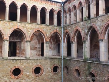 korytarze obiegające dziedziniec zdobiły egzotyczne rośliny, popiersia i cenne meble, najwyżej były sypialnie właścicieli, tam gdzie okrągłe okna - to na półpię (Kamieniec Ząbkowicki)
