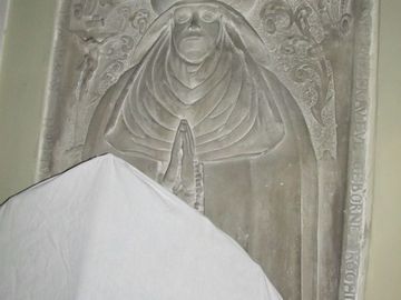 Kościół farny pw. św. Jadwigi Śląskiej - płyta nagrobna Evy z Kochów Lachhammer, mieszczki zm. w 1627 r, renesansowa, kamienna ze stojącą postacią zmarłej; w gó (Grodzisk Wielkopolski)
