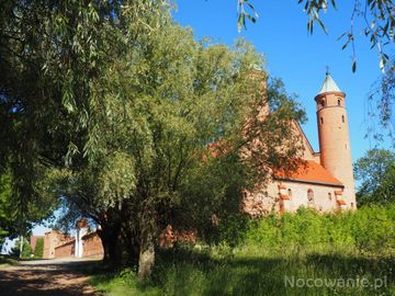 kościół obronny - murami otoczony, z bastionem i wieżami, n/z widoczne mury wsparte szkarpami. (Brochów)