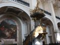 Kościół otrzymał układ halowo-emporowy: po obu stronach nawy głównej umieszczono rzędy kaplic - n/z ambona, pięknie ubogacona a jej baldachim wieńczy figura Boga Ojca adorowanego przez aniołów.