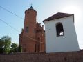 kościół pełnił też rolę obiektu obronnego - jest otoczony murem, tam podczas zagrożeń przez wroga mogła schronić się okoliczna ludność, tu widoczne wieże forteczne.