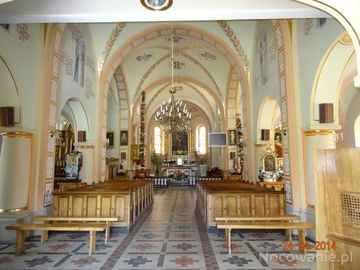 kościół pw. św. Wojciecha, wzniesiony w latach 1924-33, n/z wnętrze, tam też m.in. obraz przedstawiający św. Elżbietę, z końca XVIIIw. oraz Matka Boska Częstochowska,dzieło malowane na blasze, przeniesione z klasztoru Karmelitów Bosych w Zagórzu.