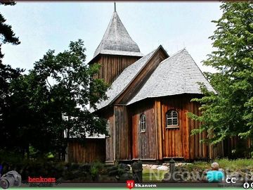 ⚐..Kaszubski Park Etnograficzny im.Teodory i Izydora Gulgowskich - Wdzydze Kiszewskie. Kościół św. Barbary ze wsi Swornegacie w j.kaszubskim Swòrnégace lub też Swòrnigace. ✍..Kościół Św. Barbary został wzniesiony w 1700r. na miejscu poprzedniej świątyni, które uległa zniszczeniu w pożarze, tak jak część wsi. Po 40 latach, do budowli dostawiono dzwonnicę. Generalny remont obiekt przeszedł w 1789r., a na początku XIX w. odnowiono wnętrze. Wykonano wówczas dekoracje malarskie na stropie i wylepiono ściany papierowymi kołtrynami. W 1916 r. zaprzestano wykorzystywania świątyni do celów liturgicznych, co miało bezpośredni związek z nowobudowanym, neobarokowym kościołem. Pod koniec XXw. Obiekt rozebrano i przewieziono do Kaszubskiego Parku Etnograficznego we Wdzydzach Kiszewskich. W 1987r. poświęcono odbudowaną świątynię. Budowla jednonawowa, z wyodrębnionym prezbiterium, węższym i niższym od nawy, zamkniętym wielobocznie w części wschodniej.Oryginalne wyposażenie świątyni przekazała Kuria Diecezji Chełmińskiej. Przy zachodniej ścianie nawy ustawiona jest dzwonnica. Dopełnienie bryły stanowią kruchta oraz zakrystia. Kościół wybudowano, z drewna sosnowego; nawę, prezbiterium i zakrystię w technice zrębowej, dzwonnica i zakrystia są konstrukcji szkieletowej, odeskowane. Dachy odrębne dla każdego członu budowli, podbite są dębowymi szkudłami, pomorską odmianą gontu. Obok kościoła stoi kopia krzyża z Wieprznicy, z datą 25 listopada 1766 roku.
