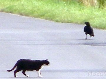 kot a ten ptak to pewnie kruk zdjęcie zrobione z dość odległego miejsca