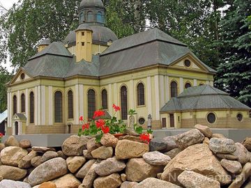 KOWARY - Park Miniatur Zabytków Dolnego Śląska - Kościół Podwyższenia Krzyża Świętego w Jeleniej Górze. Jeden z sześciu Kościołów „Łaski” wybudowanych na Dolnym Śląsku odwzorowanych na Kościele Św. Katarzyny ze Sztokholmu.