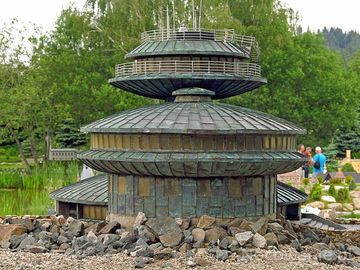 KOWARY - Park Miniatur Zabytków Dolnego Śląska - Nowy budynek obserwatorium wysokogórskiego wzniesiony został w 1974 w kształcie trzech talerzy na górze znajdu (Kowary)