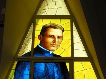 Kozioł. Malowane witraże w oknach w kościele Najświętszego Serca Jezusowego w Koźle  (Kozioł)
