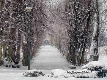 Kraczewice. aleja w parku przy pałacu wybudowanym w latach 1912 - 1914 przez niemiecką rodzinę Gerliczów. Foto. Krzysztof Goleń