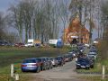 Kraczewice Prywatne, drewniany kościół konstrukcji szkieletowej pw. Najświętszego Serca Pana Jezusa, wybudowany 1919-20, ławki przed ołtarzem letnim. W tle dzwonnica drewniana. - foto. Krzysztof Goleń