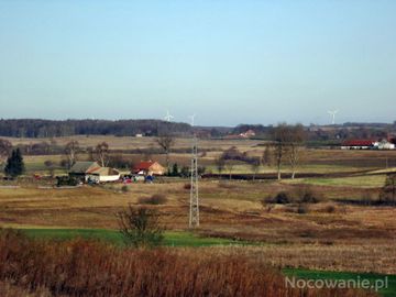 Krajobraz wokół Worpławek,Worpławki znajduą się daleko pod lasem między wiatrakami. 2011-12