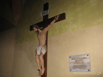 krucyfiks ludowy z XIX wieku, w kruchcie kościoła.