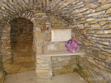 krypta - Józefa Bukowskiego, chorążego sanockiego - fundatora kościoła, pod jedną z kaplic kościelnych, mały ołtarzyk i tablica ufundowana przez parafian w 1987 (Nowotaniec)