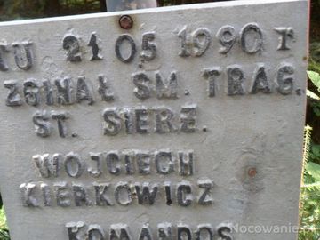 krzyż dla upamiętnienia - przy ścieżce od platformy do poletka nad bazą sprzętu przy kamieniołomie, zalecam ostrożne tam przejście - jest stromo, bywa że ślisko, korzeni czasem trzymać się trzeba i innym rękę podać, uważać na dzieci - łatwo się wywrócić - widok może zaszokować a pod nogi wciąż patrzeć należy i ostrożnie stąpać.