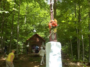 krzyż nad potoczkiem wypływającym - wg tradycji i dziejowych przekazów - z cudownego źródełka, tam też leśna kapliczka - niegdyś było to "wyższej rangi" miejsce odpustowe - tu przybywali wyznawcy różnych obrządków, tu podążały pielgrzymki Polaków, Łemków, Słowaków, Cyganów, Rusinów i Węgrów. Wodę stąd zabierali do święcenia domostw, chorym, niedołężnym, utrapionym.