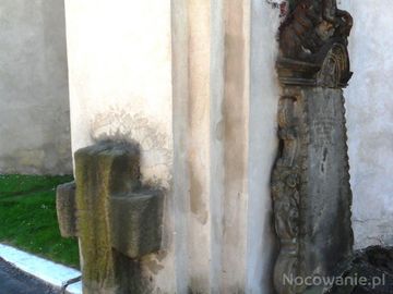KRZYŻ POKUTNY I EPITAFIUM NA ŚCIANIE KOŚCIOŁA  (Leśna)