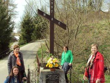 krzyż przydrożny - osadzony w betonowym postumencie a na nim tablica fundacyjna. Ogrodzony stylowym metalowym płotkiem , otoczenie zadbane i obłożone posadzką, ukwiecone. W narożnikach płotka : krzyże na kopułkach a one symbolizują te na cerkwi.