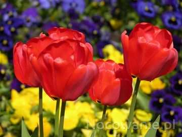 Kwiaty na klombach w parku w Busku-Zdroju.