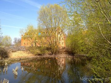 Kwiecień 2011. Malowniczy staw w zespole parkowo - dworskim, pomiędzy spichlerzem, a zabudowaniami dworu (szkoły podstawowej).