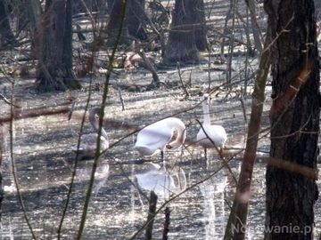 Łabędzia rodzina na parkowym stawie  (Jasieniec Solecki)