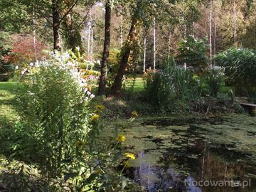 linia brzegowa stawu - ukwiecona z przewagą na aster angielski no a na tafli wód: grążele, lilie wodne, grzybienie i nenufary - no i zachwytów wiele !